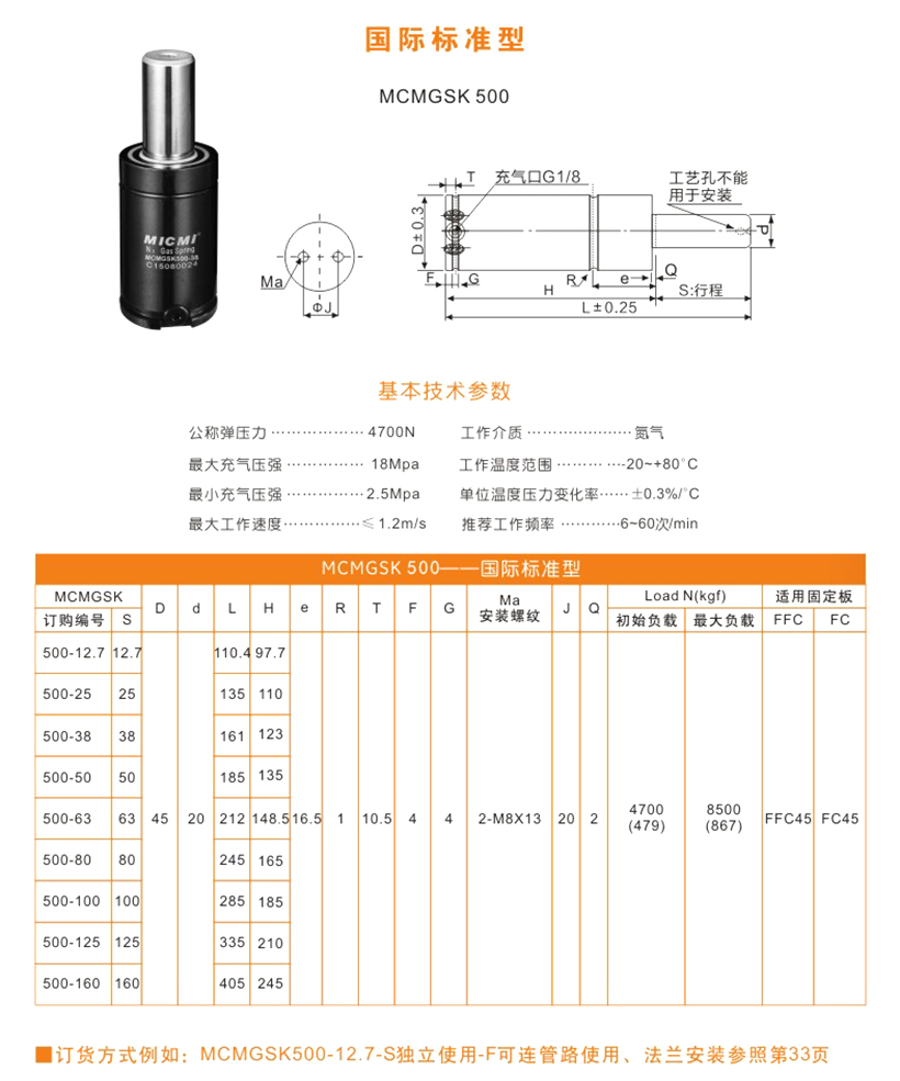 米蘇米MICMI五金塑膠模具壓縮氮?dú)鈴椈?“MCMGSK500國(guó)際標(biāo)準(zhǔn)型” 多行程廠家直銷