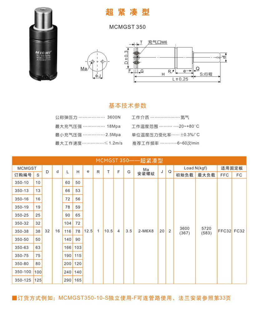 米蘇米MICMI五金塑膠模具壓縮氮?dú)鈴椈?“MCMGST350超緊湊型” 多行程廠家直銷(xiāo)