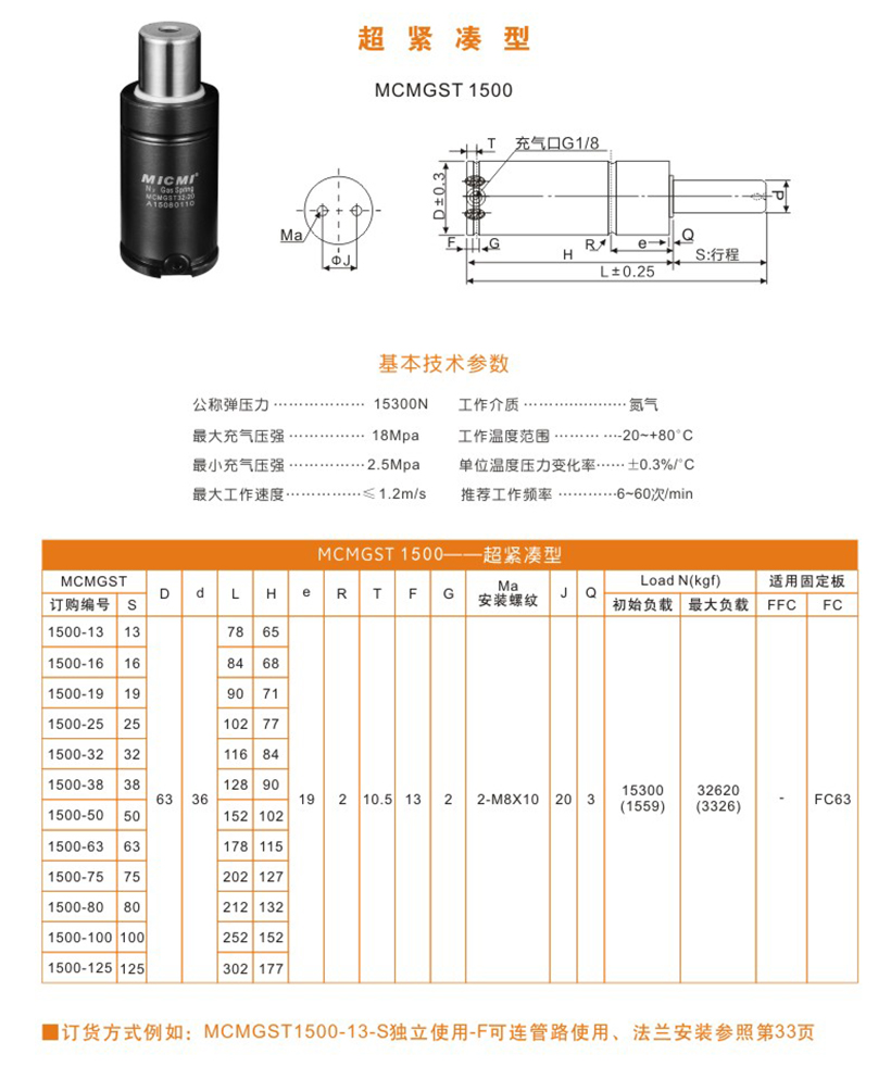 米蘇米MICMI五金塑膠模具壓縮氮?dú)鈴椈?“MCMGST1500超緊湊型” 多行程廠(chǎng)家直銷(xiāo)