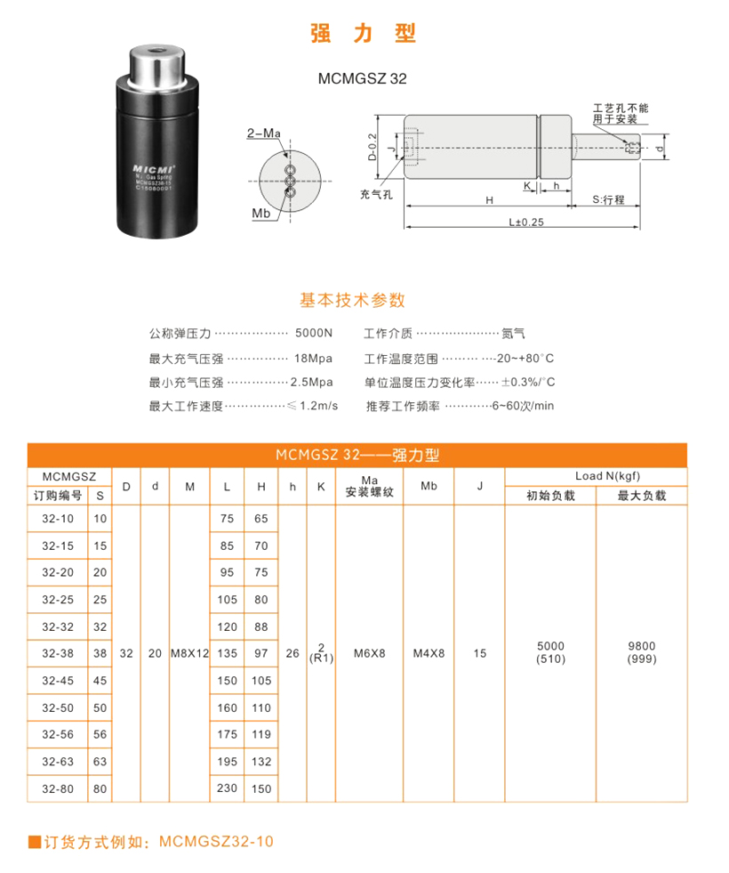 米蘇米MICMI五金塑膠模具壓縮氮氣彈簧 “MCMGSZ32強力型” 多行程廠家直銷
