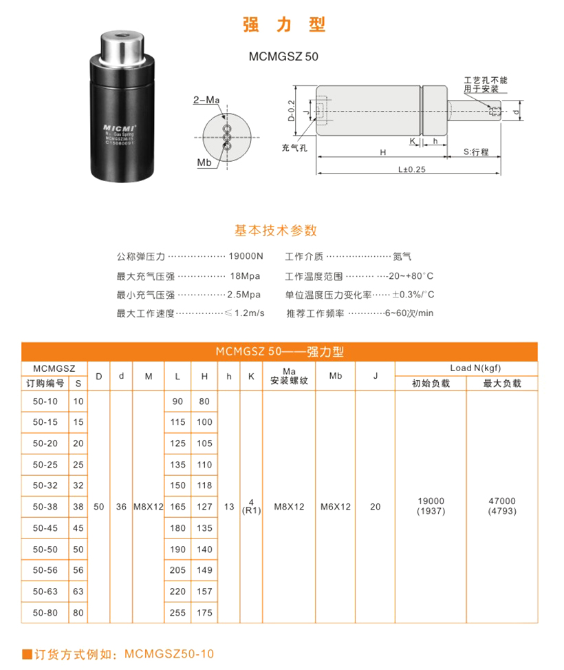 米蘇米MICMI五金塑膠模具壓縮氮氣彈簧 “MCMGSZ50強力型” 多行程廠家直銷