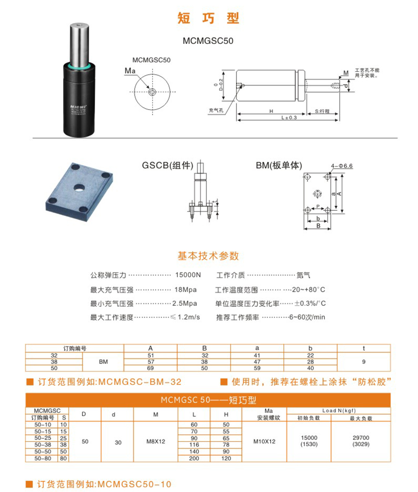 米蘇米MICMI五金塑膠模具壓縮氮?dú)鈴椈?“MCMGSC50短巧型” 多行程廠家直銷