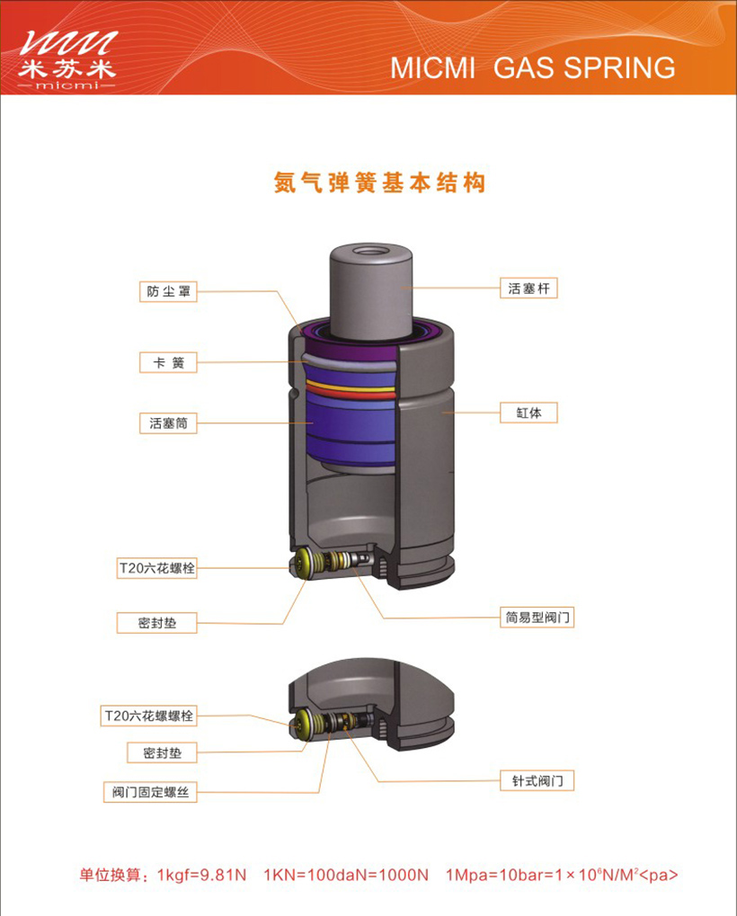 "MICMI"米蘇米氮?dú)鈴椈蔀楦邏嘿M(fèi)封制品,出廠前經(jīng)過嚴(yán)格的檢查和測試,不允許有任何的氣體泄涌現(xiàn)象,因此要求用戶正確地安裝和使用才能確保其安全可靠性和使用壽命。