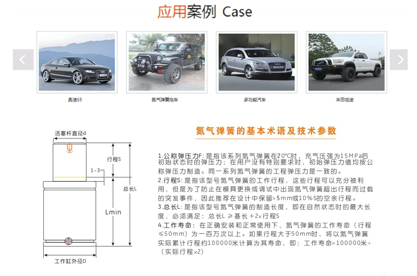 2、確保留出行程最少3-5毫米(行程50毫米以上的最少須留10%以上)不要使用。費(fèi)設(shè)皿可靠的限位裝置以確保不超行程工作,否則有可能造成氮?dú)鈴椈蓳p壞或爆裂發(fā)生人身安全事故。