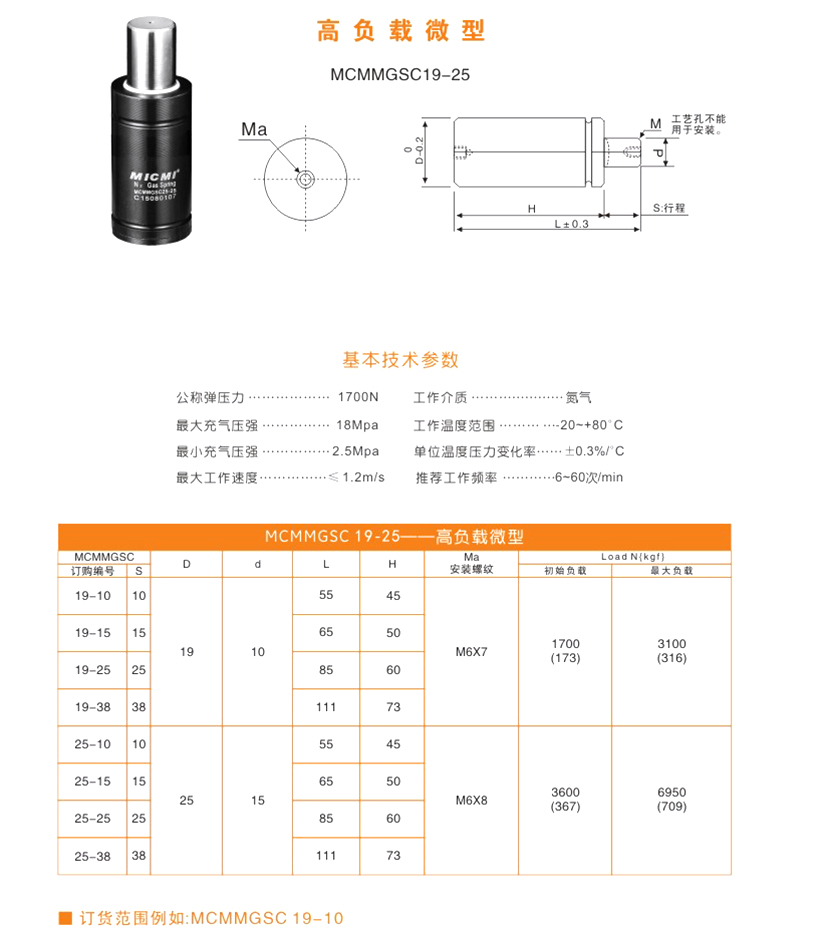 米蘇米MICMI五金塑膠模具壓縮氮?dú)鈴椈?“MCMMGSC19高負(fù)載微型” 多行程廠家直銷