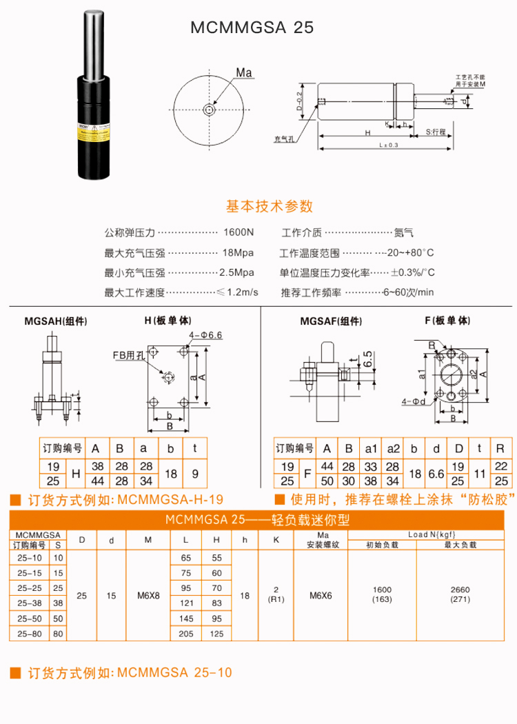 輕負(fù)載迷你型-氮?dú)鈴椈蒑GSA系列